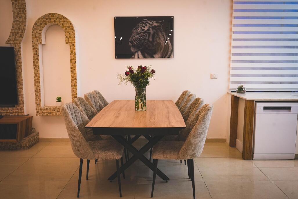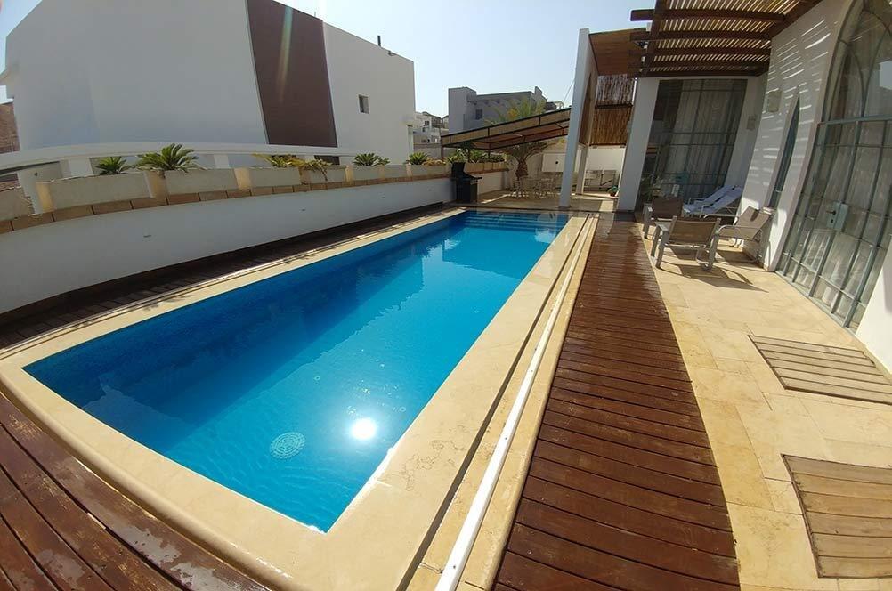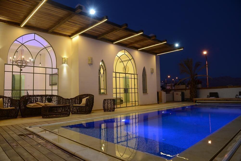 בווילה עדן המדבר באילת תמצאו חוויית נופש קסומה, עם כל מה שדרוש כדי להרגיש בבית. הוילה מציעה 8 חדרי שינה מפוארים, כולל סוויטה מרהיבה עם גישה ישירה לבריכה מחוממת. כל החדרים מעוצבים בקפידה, והמתחם החיצוני מציע פינות ישיבה מפנקות, פינג פונג, פינת BBQ, ושטח נרחב ליהנות ממנו. עם אבזור ברמה גבוהה, מקום זה אידיאלי לחופשה משפחתית.