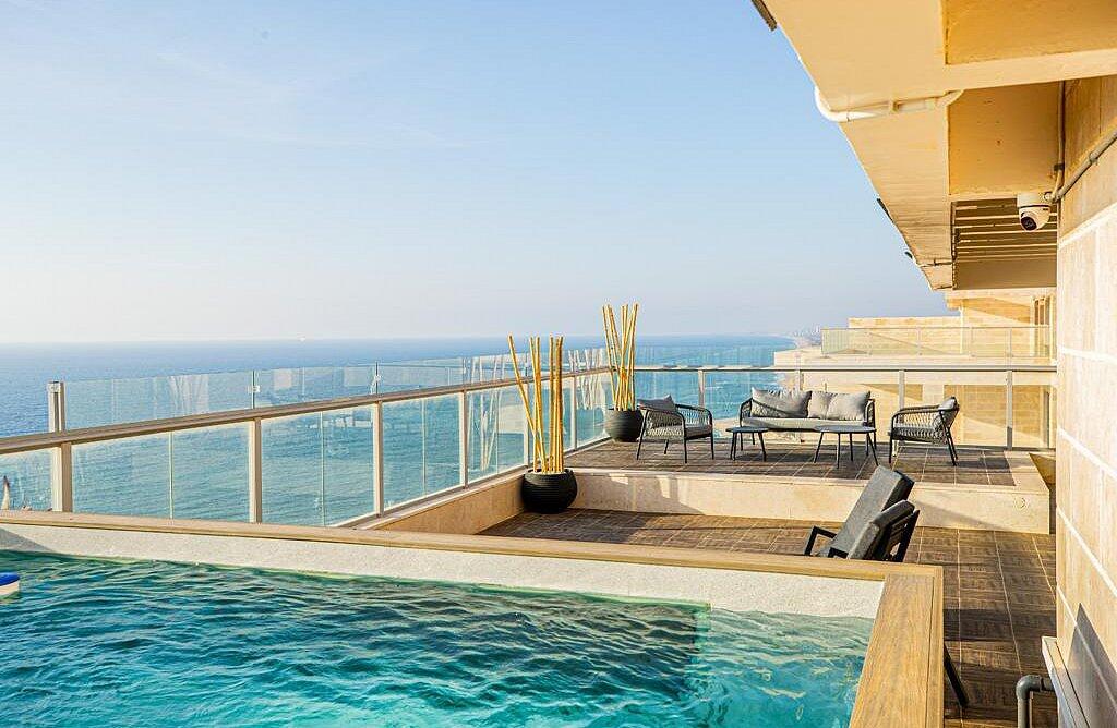 חוויית אירוח ברמה אחרת ממתינה לכם בפנטהאוז יורו מרינה, השוכן במיקום האטרקטיבי ביותר במרינה של אשקלון. המתחם מאופיין בעיצוב יוקרתי המשרה אווירה של חופש ורוגע מול נוף פנורמי לים. לצד הקרבה למסעדות ולחיי הלילה של המרינה, האורחים נהנים מבריכה פרטית מול האופק ומאבזור מלא ומוקפד בכל חלקי הפנטהאוז. זהו היעד האידיאלי עבור קבוצות, משפחות או אירועים קטנים וסולידיים המחפשים איכות ללא פשרות. הזמינו את החופשה הבאה שלכם בקו ראשון לים.