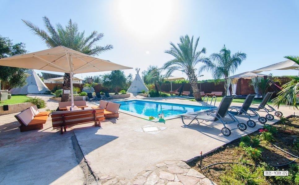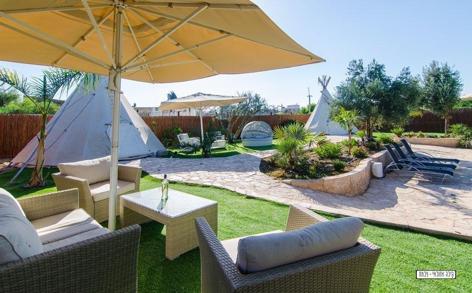 מתחם מונקאטה בדרום מעוצב בסגנון אינדיאני אותנטי, מושלם לאירועים ונופש. במתחם 4 טיפי אינדיאנים גדולים (5.2 רדיוס), כל אחד מתאים ל-5 אורחים. בנוסף, תהנו משטחי דשא ירוקים, ג'קוזי ספא גדול, פינת מנגל, מטבח חיצוני, שולחן פינג פונג, מערכות שמע ובריכת שחייה תלולה עם עצי דקל. (אין להכניס מערכות הגברה חיצוניות למתחם).