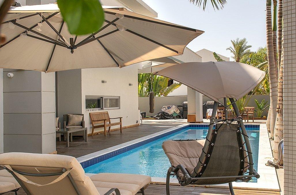 וילה נטו - מוזמנים לאילת לחופשת החלומות. וילת נופש יוקרתית הבנויה מ2 מפלסים ומונה בתוכה 5 חדרי שינה, מטבח מאובזר קומפלט, סלון מרווח, קומה עליונה עם מרפסות נוף, חצר מפנקת עם בריכת שחייה מחוממת, פינת מנגל, ריהוט גן ומיטות שיזוף. חייגו עכשיו! ותהנו ממחירים מיוחדים.
