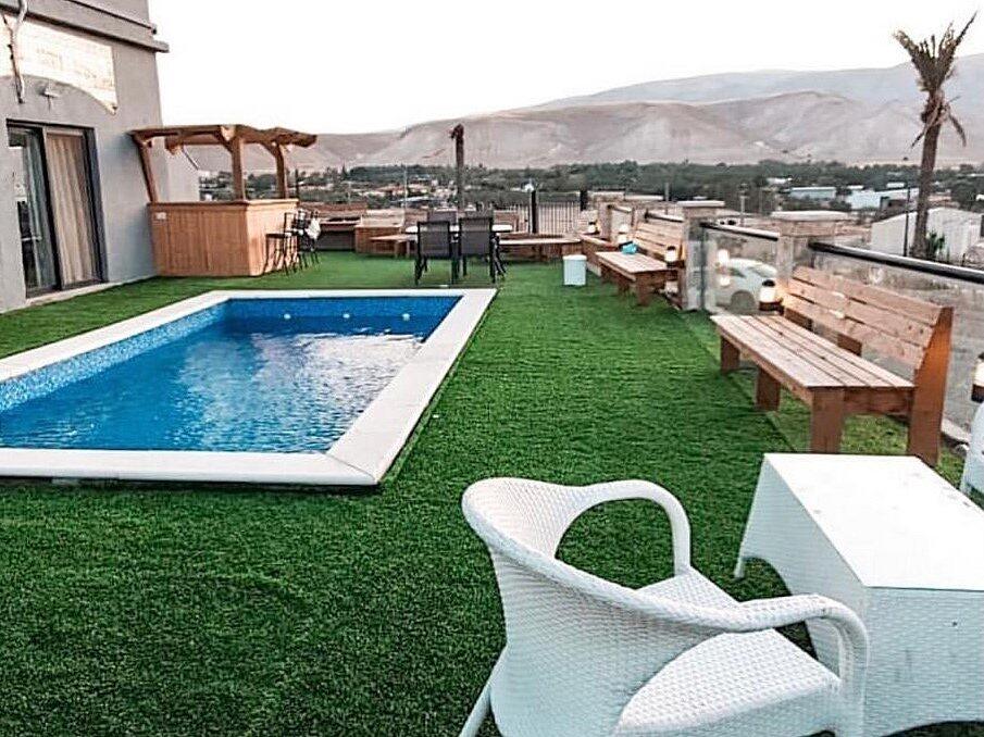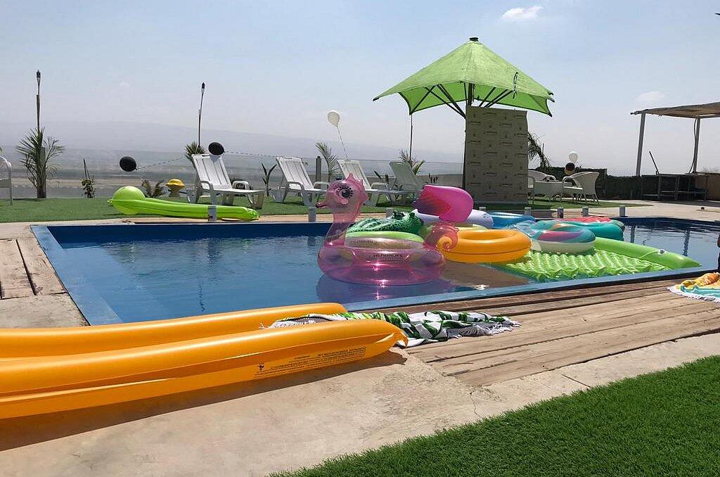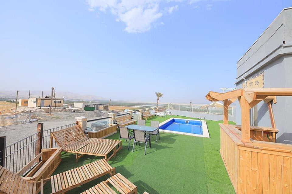 המתחם כולל בתוכו בריכת שחייה מהנה, ג'קוזי ספא גדול, סאונה וכמובן הנוף המדהים של בקעת הירדן.