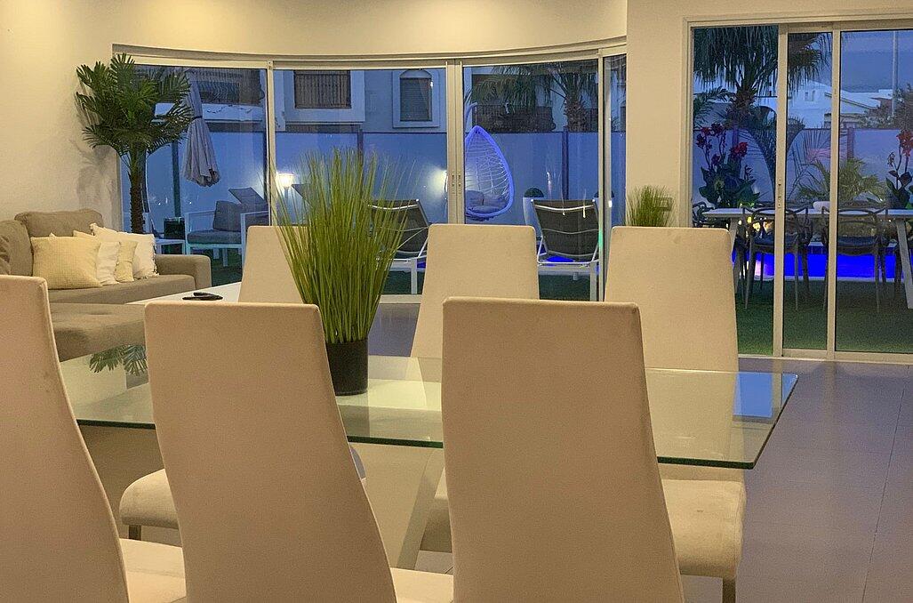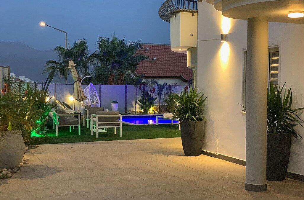 אורחי הוילה יהנו מ5 חדרי שינה מפנקים ו4 חדרי רחצה, מתחם פנים מרשים ביותר הכולל 2 סלונים ומגוון מערכות ישיבה.